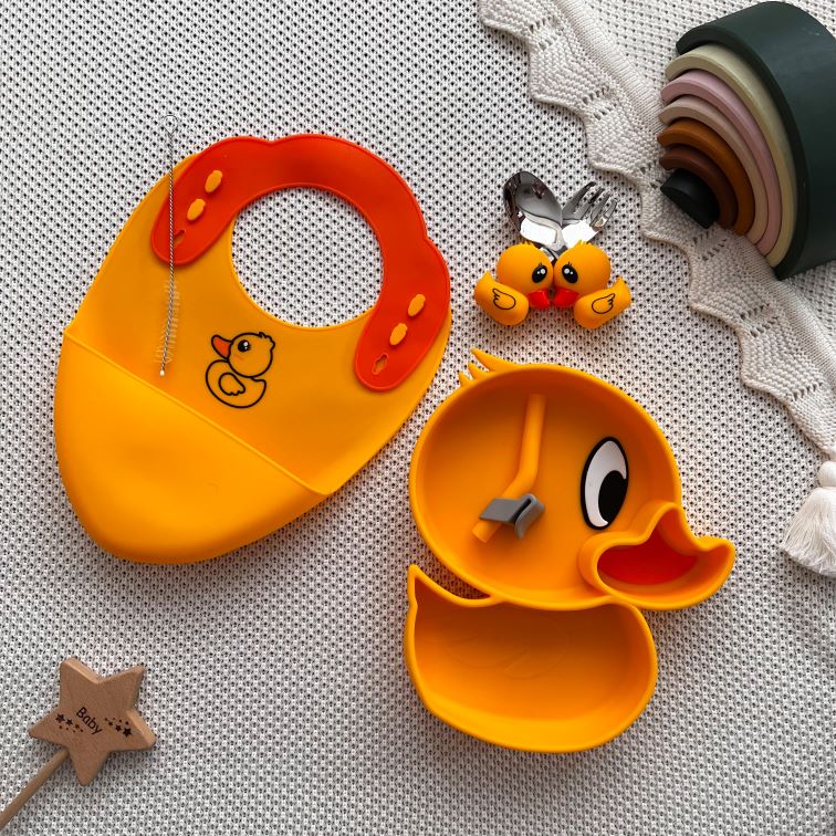 🔺ست ظرف غذا و قاشق و چنگال و نی و فرچه نیشور و پیشبند🔺